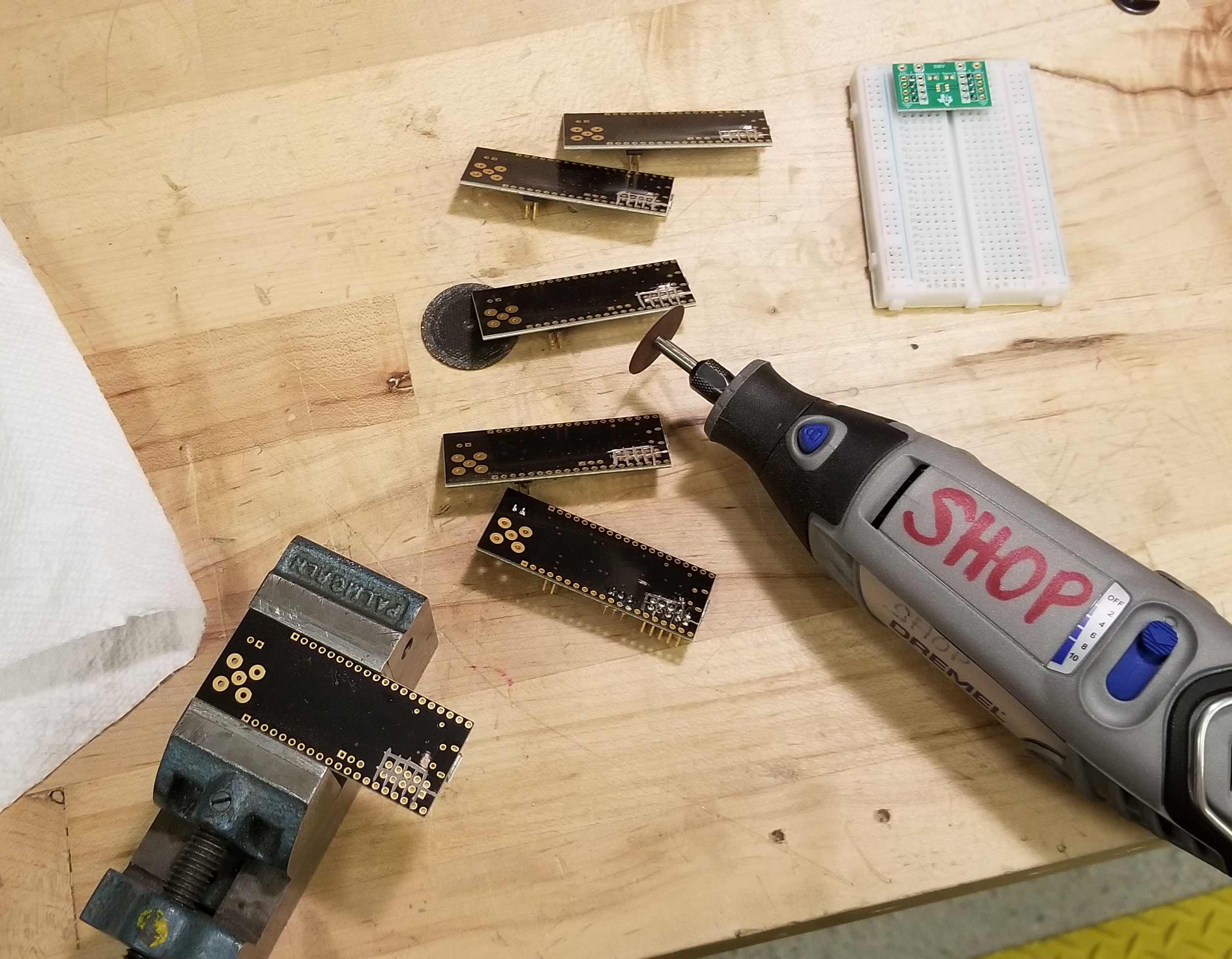 - I did manage to do a mass-rework of all of my faulty boards with a little help from my good friend The Dremel Tool. Lots of nicely segmented pins now - and with minimal damage to the actual pin plating! (I got pretty good at it by the tenth one.)